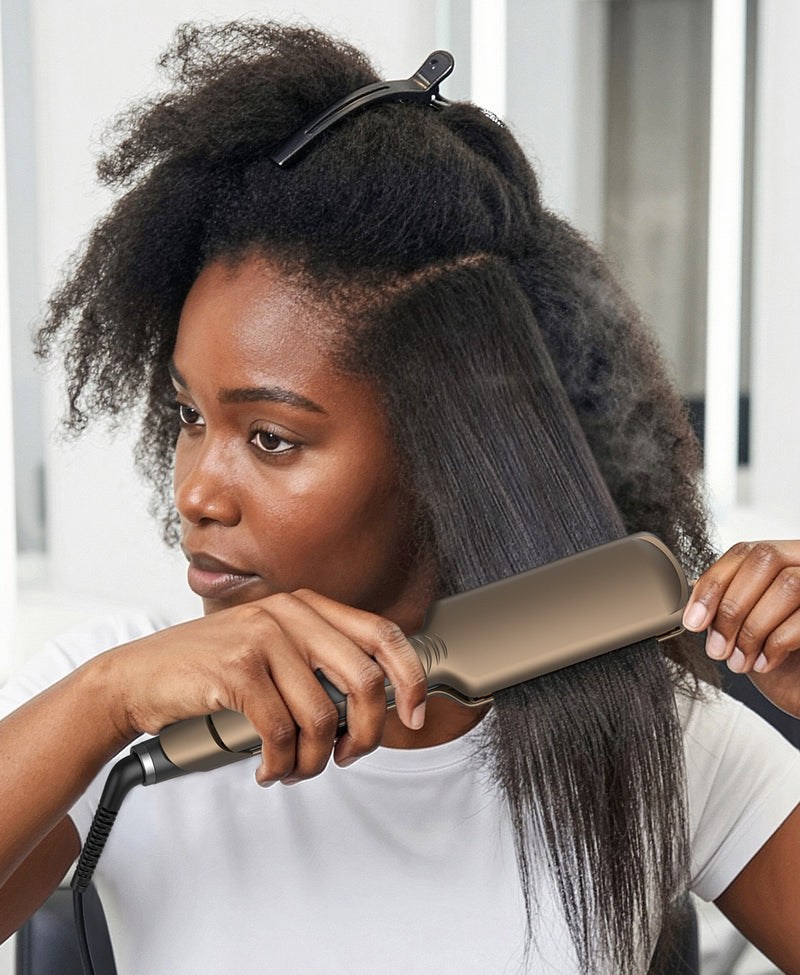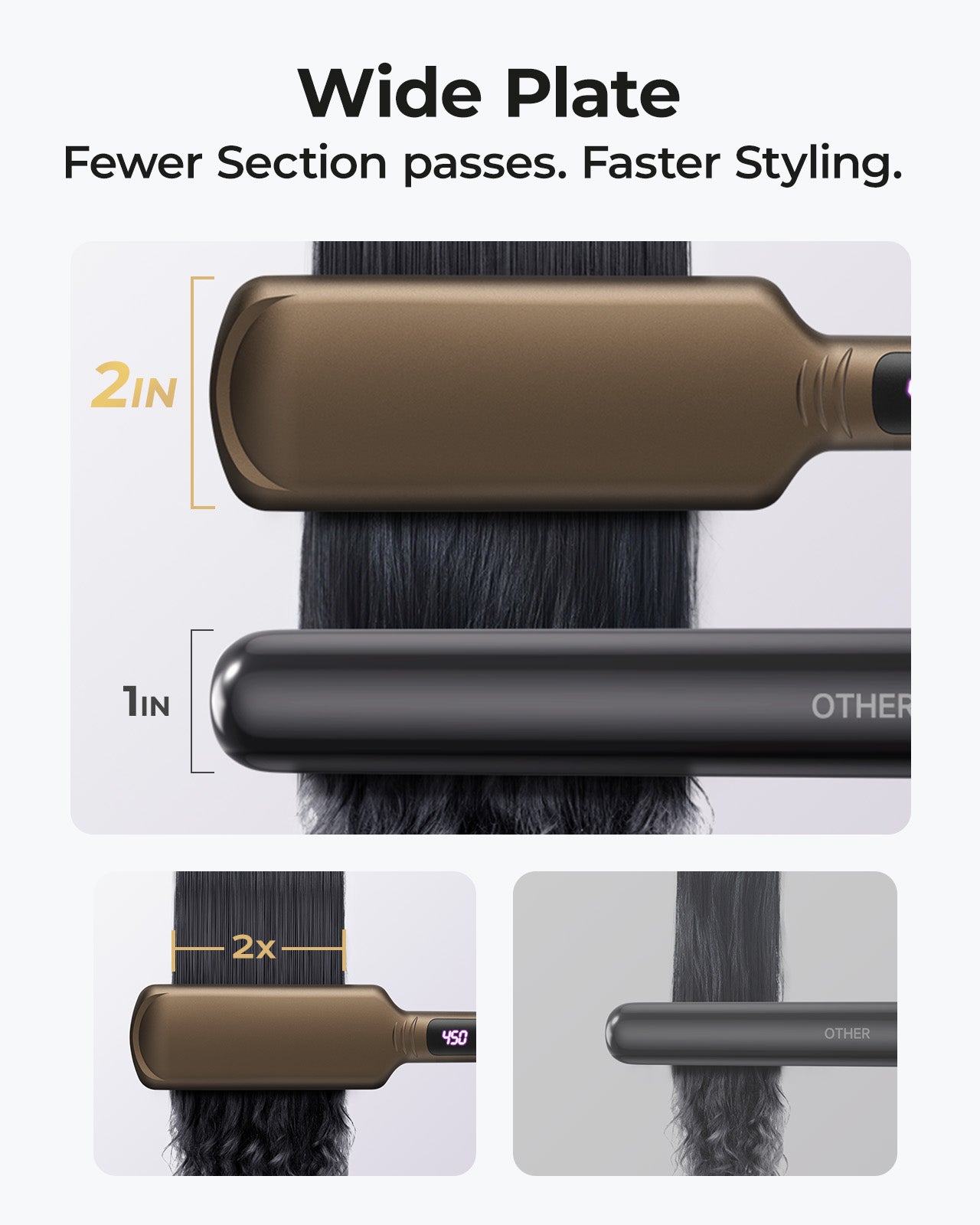 Covers more hair in every pass, making smoothing faster and with noticeably less effort—especially when working through dense, textured sections.